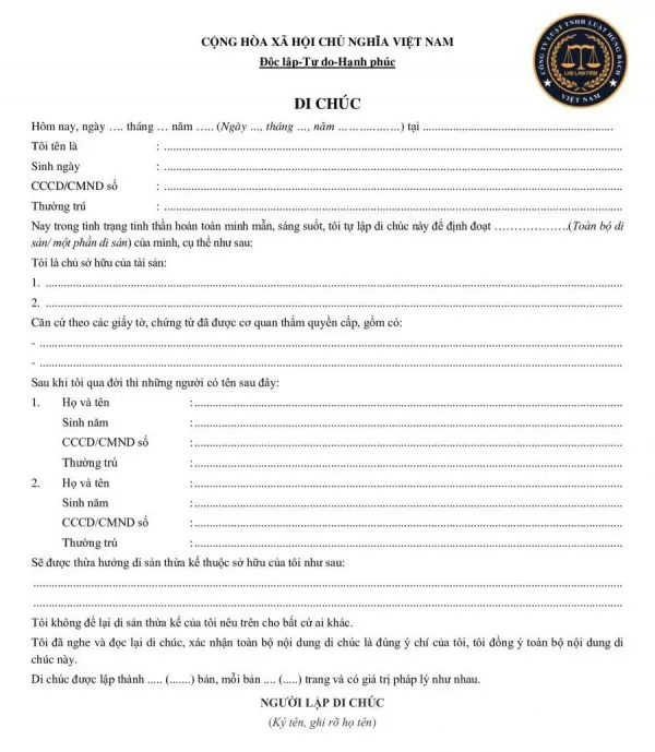 - Viết tay ngôn từ di chúc: Di chúc rất cần phải viết tay trả toàn, không có sự tẩy xóa, không thực hiện chữ in hay thiết bị tính. Câu chữ di chúc phải ví dụ và chi tiết về tài sản, quyền lợi và nghĩa vụ và nghĩa vụ của bạn thừa kế.