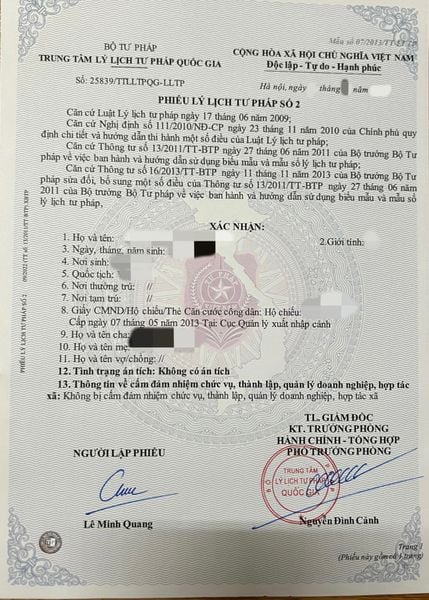 Phiếu lý lịch tứ pháp số một là một sách vở quan trọng, cung cấp tin về tình trạng án tích của một cá nhân. Nó được cấp vị cơ quan tư pháp khu vực công dân có hộ khẩu thường trú hoặc nhất thời trú. Mục đích của Phiếu lý lịch tư pháp số 1 là giúp những cơ quan công dụng xác minh lý lịch tư pháp của một cá thể trong những trường hợp quan trọng như tuyển dụng, xuất khẩu lao động, xin visa, hoặc thâm nhập các các bước yêu mong xác minh bốn cách pháp lý của bạn lao động.
