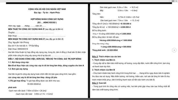Hợp đồng xây cất biệt thự chị linh
